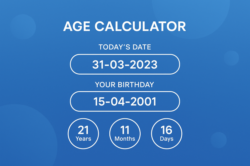 An Age Calculator is an online tool that helps you quickly find out your age based on your date of birth. Instead of calculating manually, you enter your birthdate, and the calculator instantly shows: