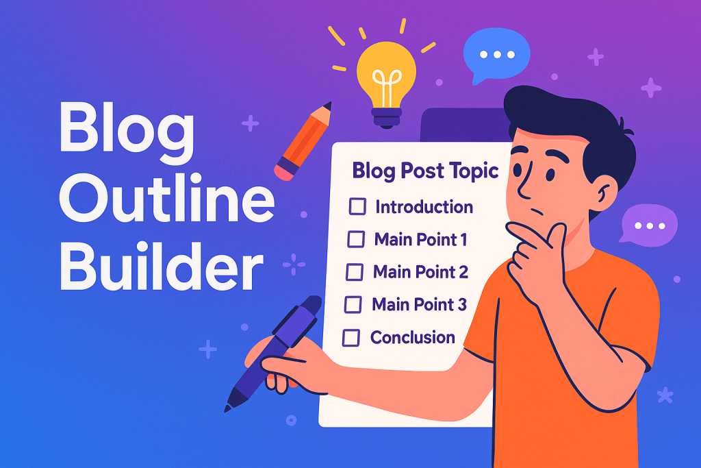 Writing a blog becomes much easier when you start with a clear and structured outline. Our Blog Outline Builder helps you generate a professional outline instantly. Whether you’re a beginner or an experienced content writer, this tool guides you to create well-organized, SEO-optimized outlines for any topic.
