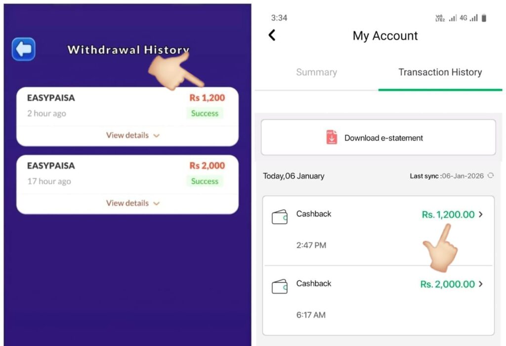 Many Pakistani users want to withdraw their earnings directly to popular mobile wallets such as Easy Paisa or Jazz Cash. This game supports both EasyPaisa and JazzCash. The user can easily withdraw to mobile wallets.