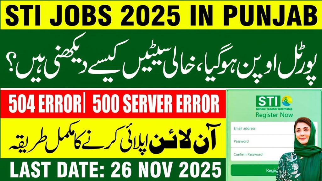 The Government of Punjab has officially opened the portal for STI (School Teacher Interns) Jobs 2025, starting 12 November. According to the Provincial Education Minister Rana Sikandar Hayat, the response has been massive — with over 100,000 applications submitted on the very first day.