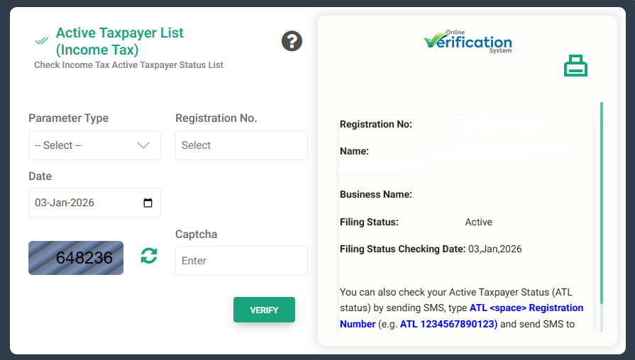 Step 2: Go to the Online Verification Portal. After the website opens, click on Active Taxpayer List (Income Tax)