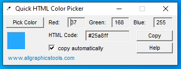 Quick HTML Color Picker is a free Windows program that lets you select the color of any pixel and view its HEX, RGB, or HTML code.